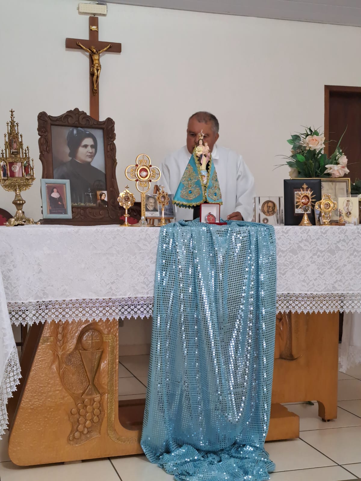Durante a celebração as relíquias permaneceram expostas ao lado do Altar.